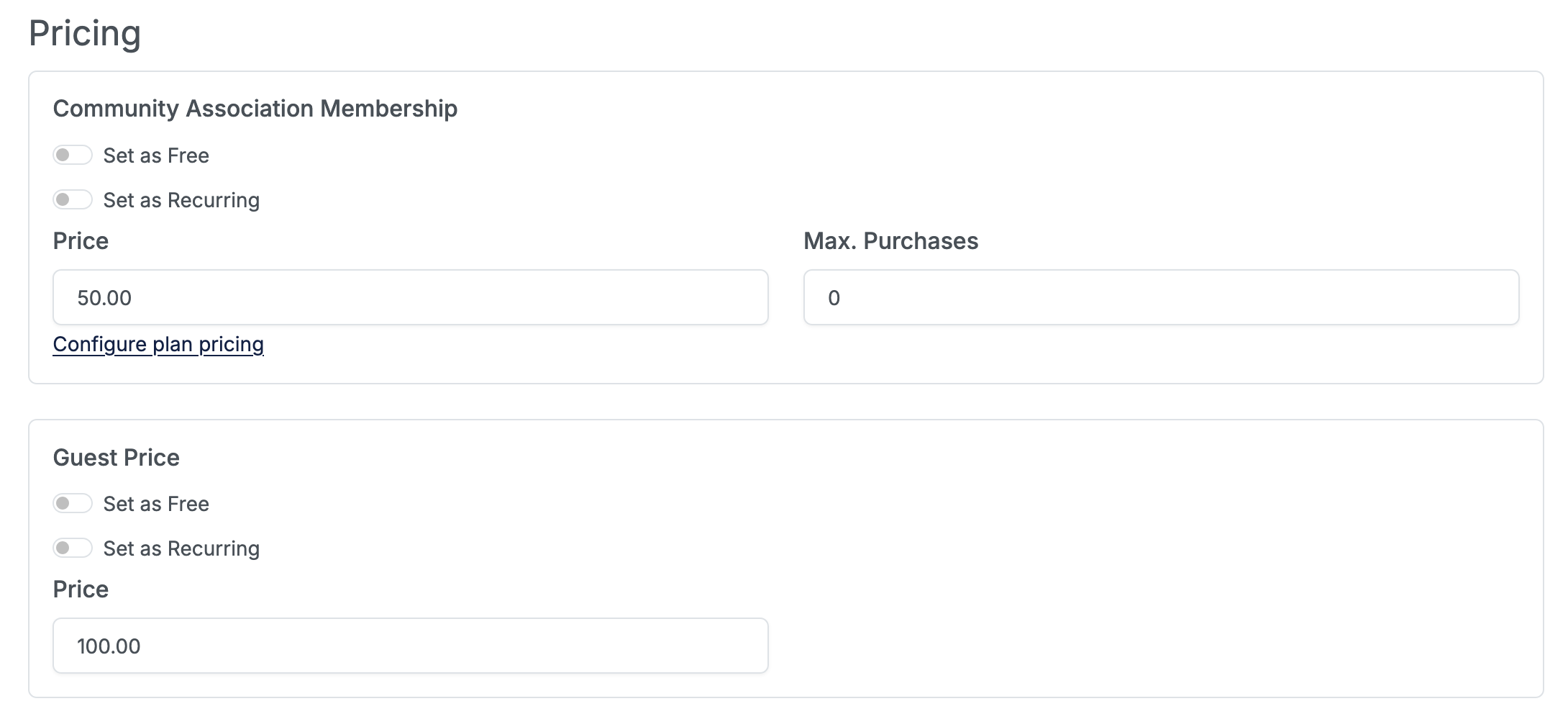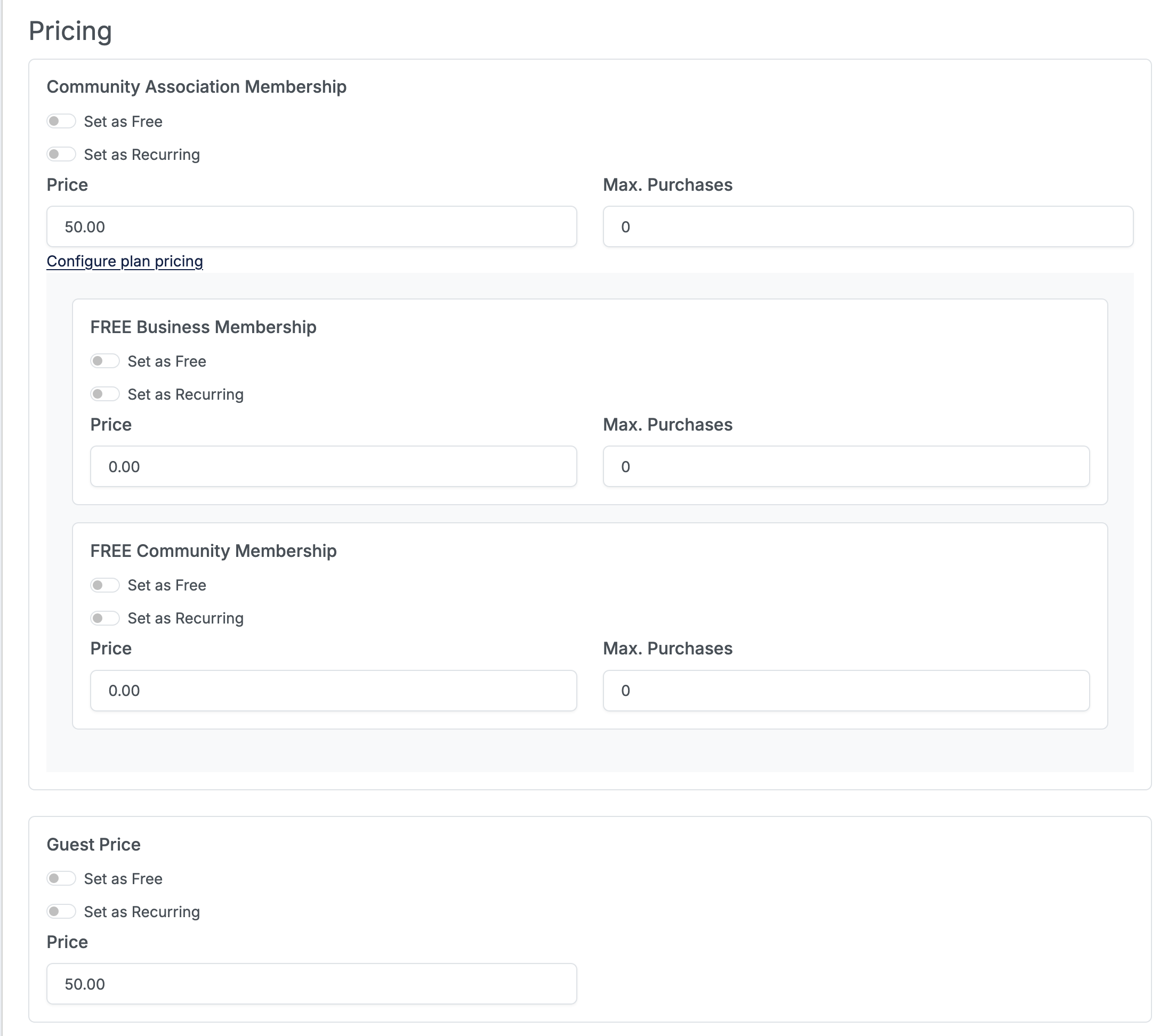 This section allows you to configure the various price points for your program.