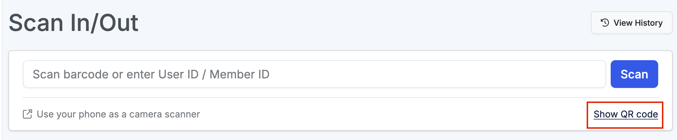 You can scan people in using two different methods, first on desktop using their membership number, the second is on mobile by scanning the QR code or barcode on their membership card